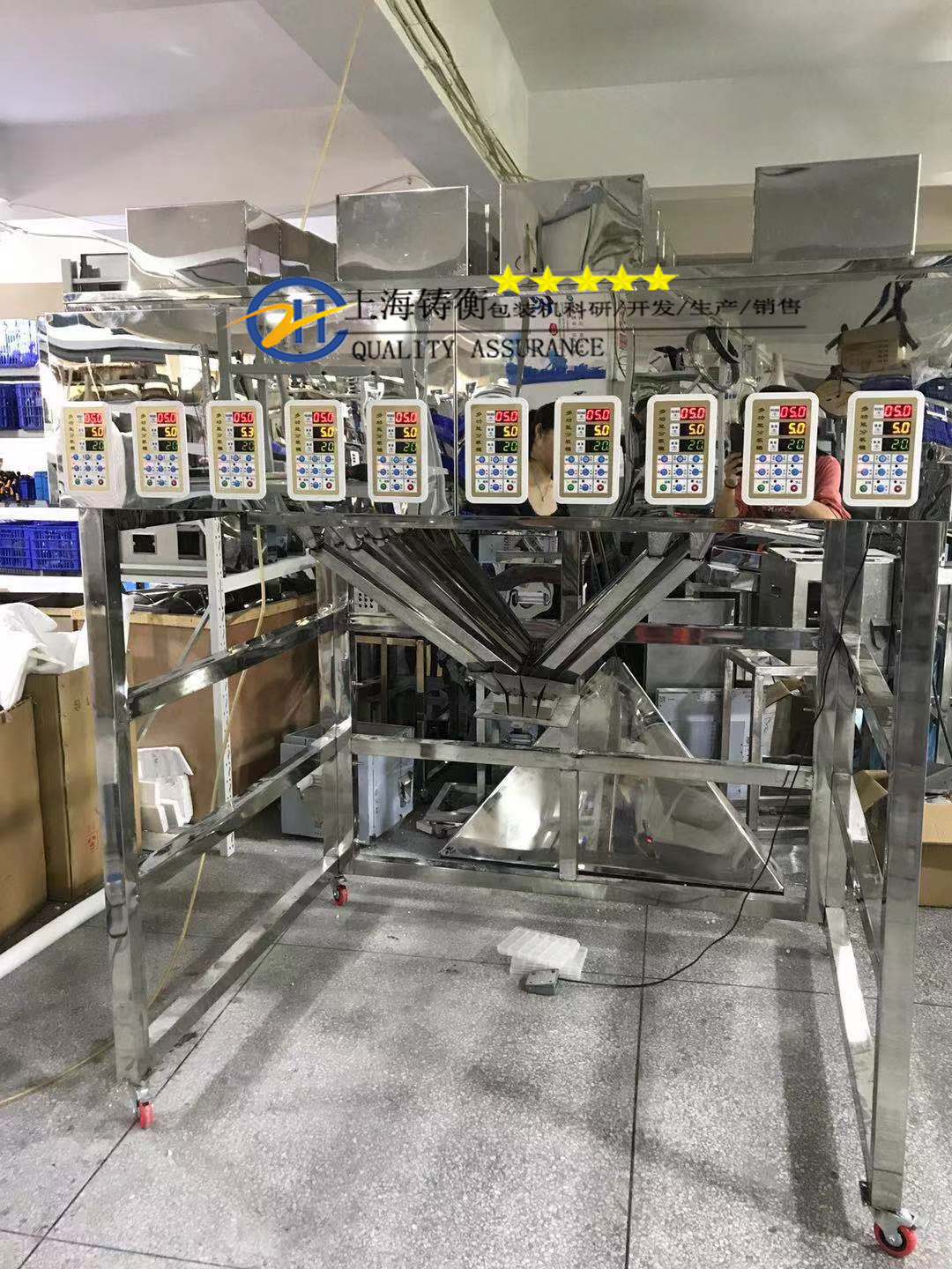 鑄衡生產(chǎn)的高精度粉劑分裝機(jī)專為分裝顆粒粉末物料研發(fā)生產(chǎn),采用微電腦智能控制下料,精度更高,速度更快,性能可靠,全不銹鋼密封機(jī)體,具有防腐、防塵之功效,由料斗、振動(dòng)送料器、稱量器、稱斗、開(kāi)門機(jī)構(gòu)等組成。